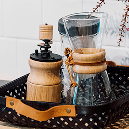 カリタのコーヒーミルと、ケメックスのドリッパーをご用意しております。