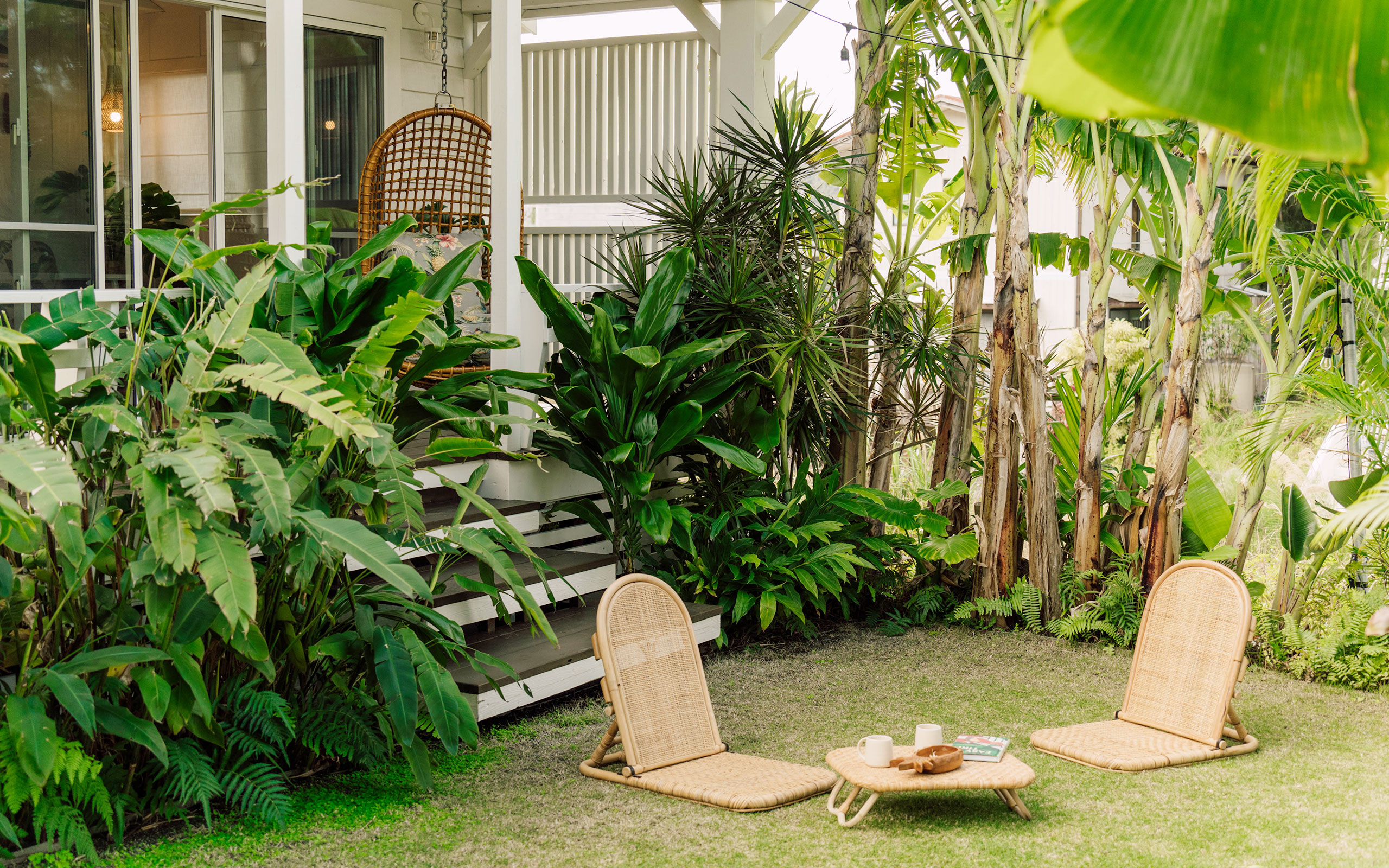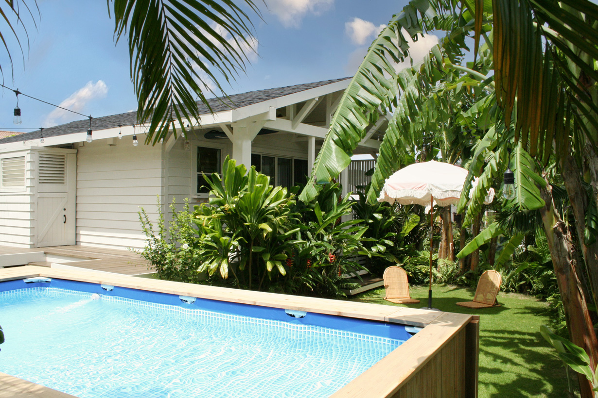 南国の植物に囲まれた小さなハワイアンスタイルホテル。