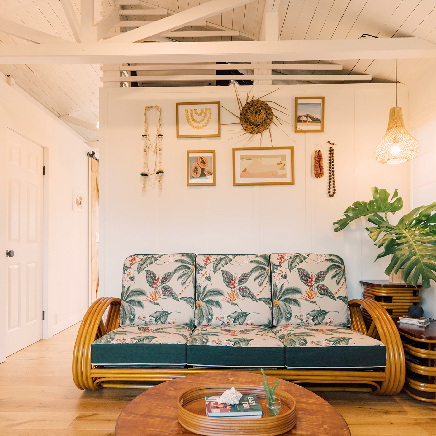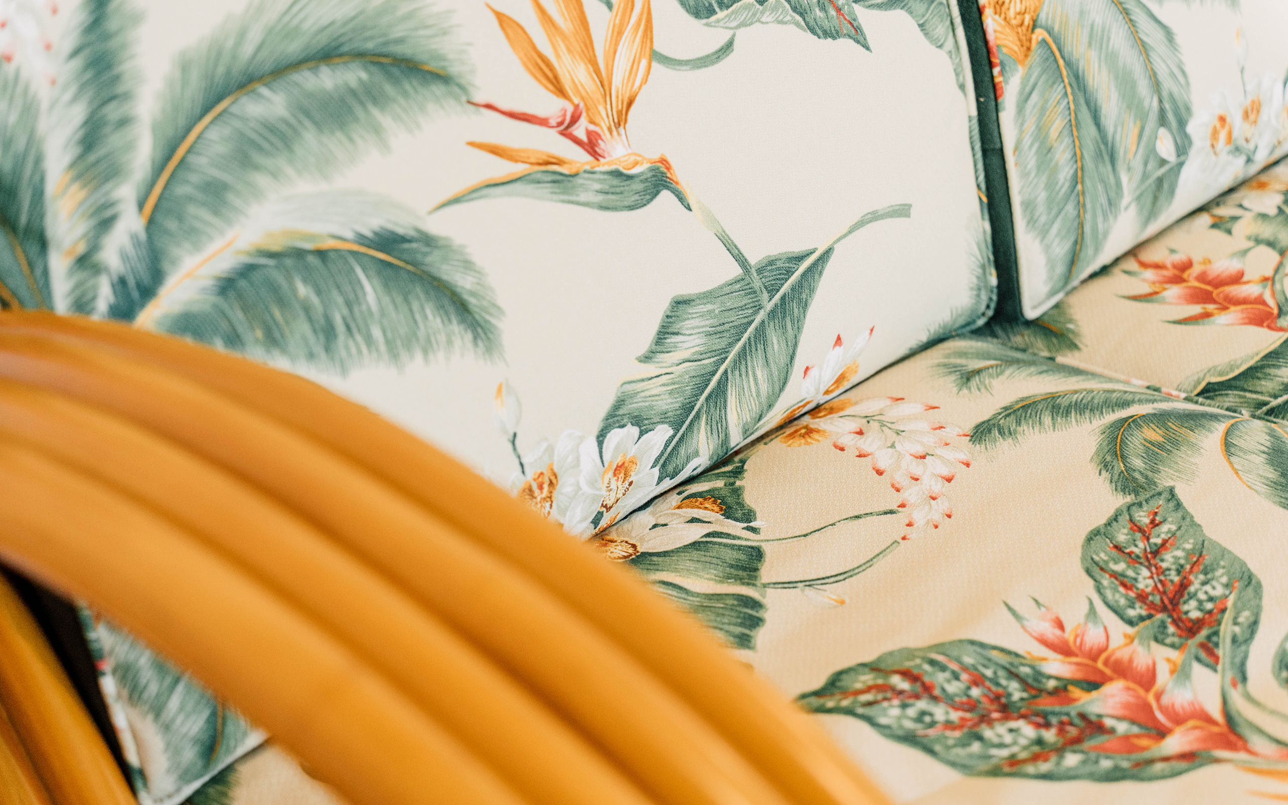 ハワイアンファブリックを使用したソファ